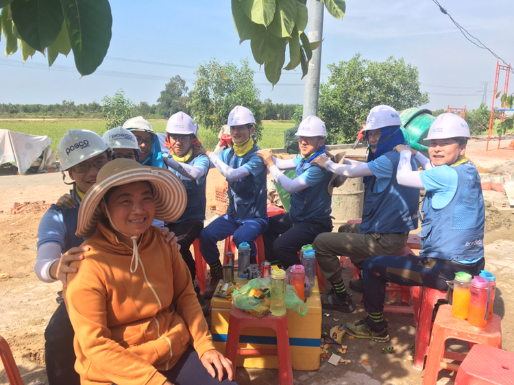 POSCO Vietnam 뿐만 아니라 POSCO VHBC, POSCO SSVINA 직원 분들도 함께 봉사에 참여해주셨어요~ 한국인이지만 베트남에서 어렸을 때부터 자란 친구도 있고, 현지인이지만 한국어를 자연스럽게 구사하는 친구도 있었는데 또래여서 반가웠어요. 홈파트너, 스킬워커들과 의사소통 할 수 있도록 통역 지원도 해주시고, 다른 조보다 2명 인원이 부족했던 우리 조에 큰 힘이 되어주었답니다.