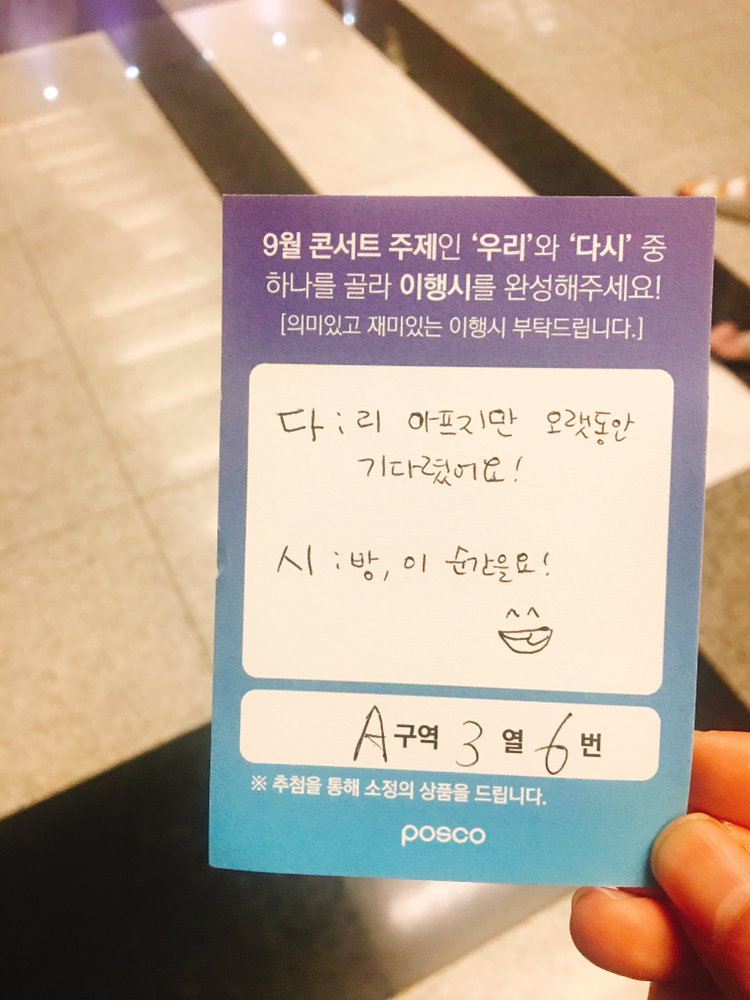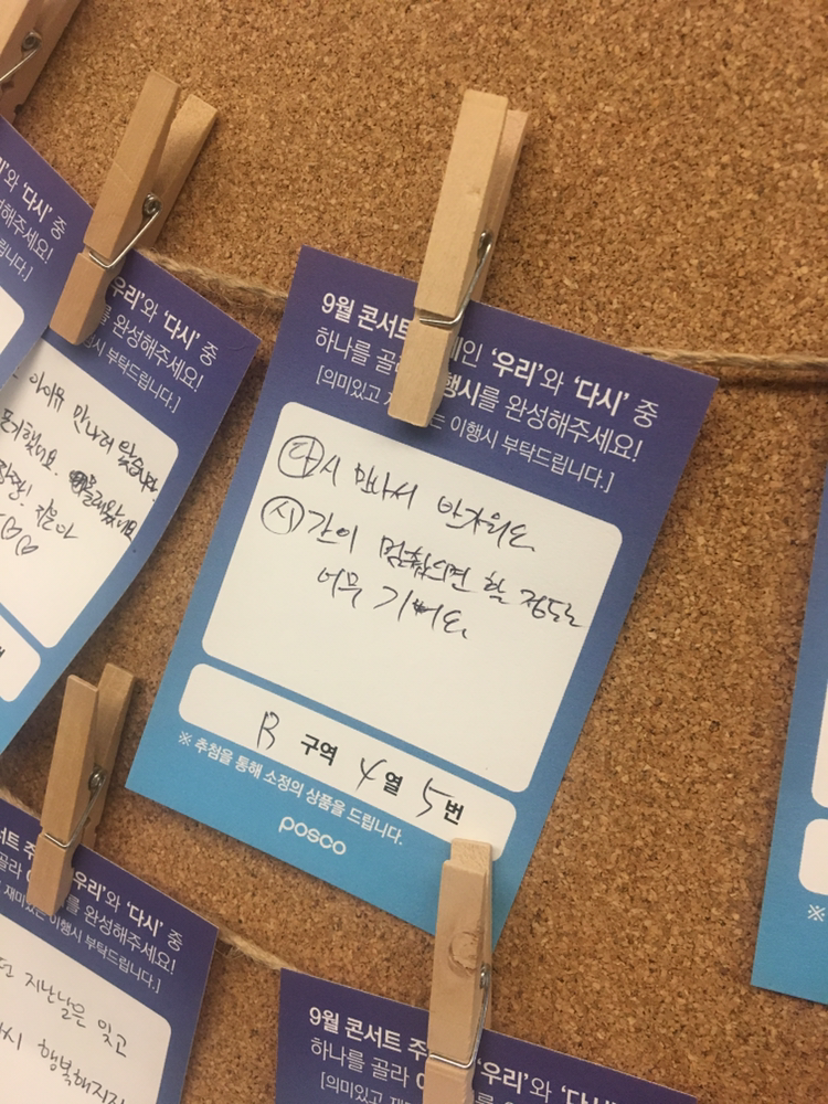 이번 콘서트의 주제인 '우리'와 '다시'로 이행시 짓기 이벤트도 진행되었어요~