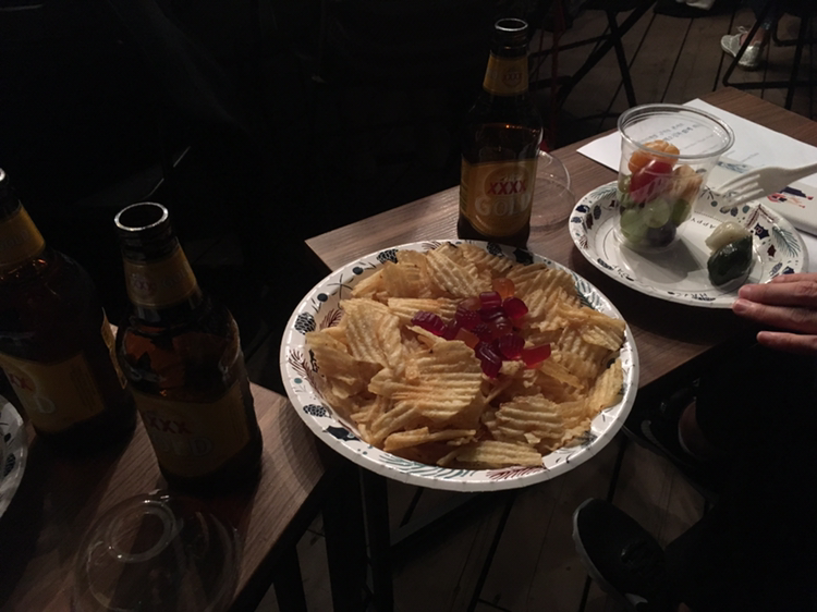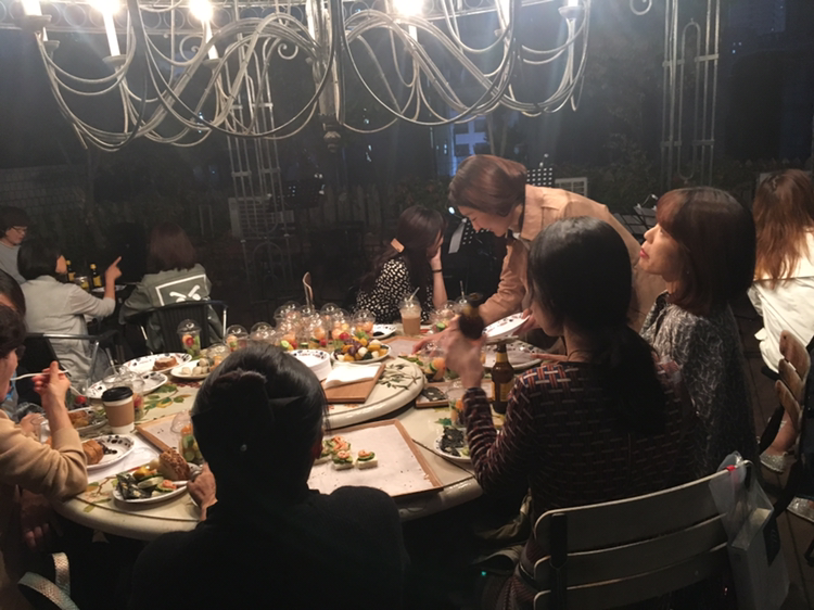 책방은 4층이고, 한층 더 올라가면 루프탑이 나옵니다. 간단한 다과가 준비되어 있는데, 추석을 맞아 송편도 보이네요.