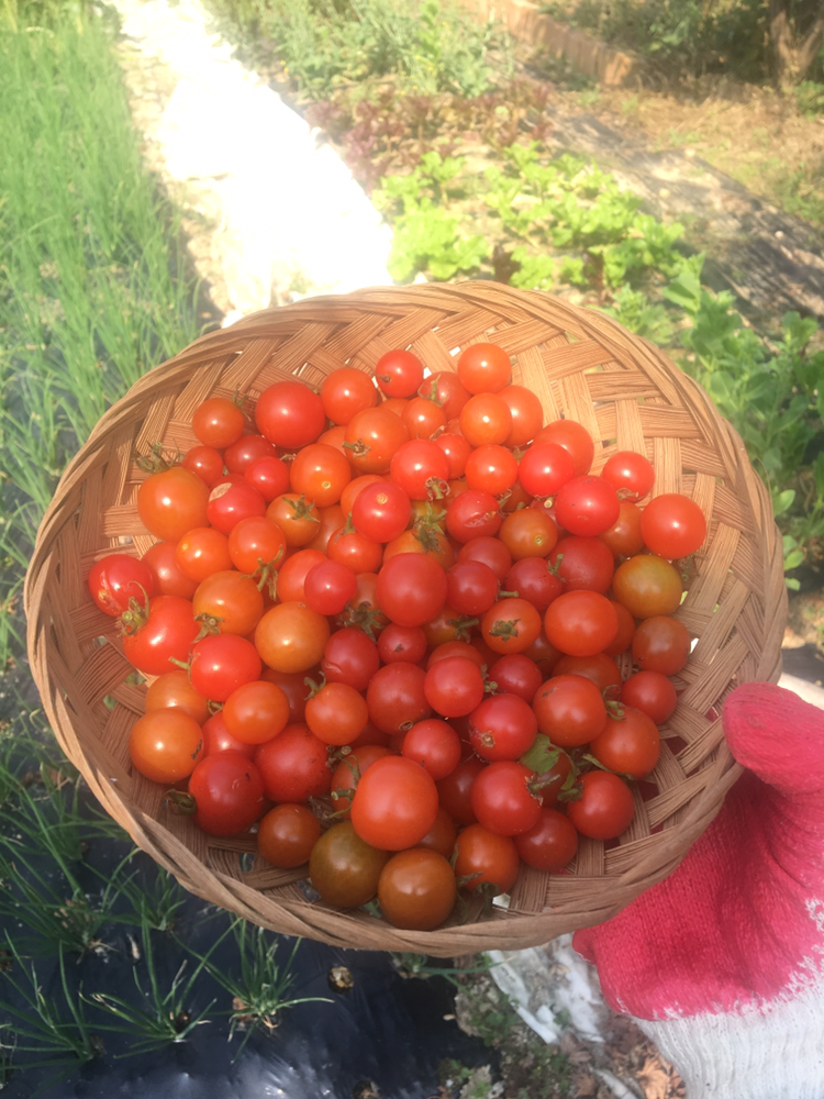 거미줄에 걸리지 않게 사방을 살피며, 밭 구석구석을 뒤져 방울 토마토를 모았다.