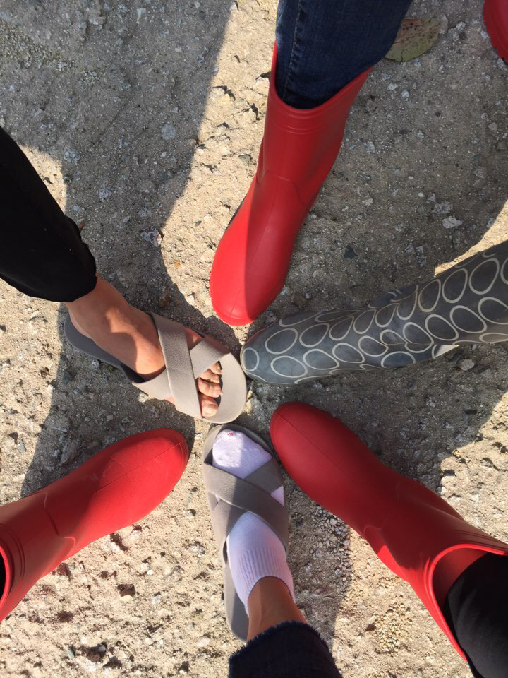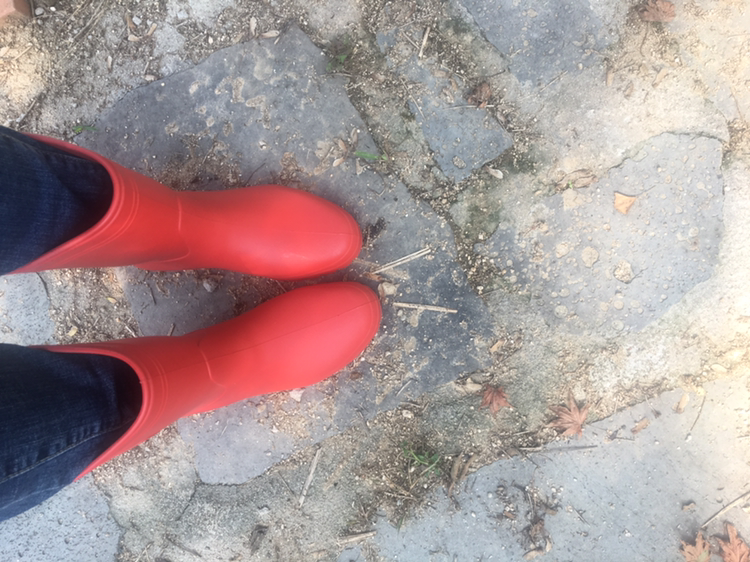 밭에는 벌레도 많고, 간혹가다 뱀이 나올 수 있어 빨간 장화를 신고 출발~!