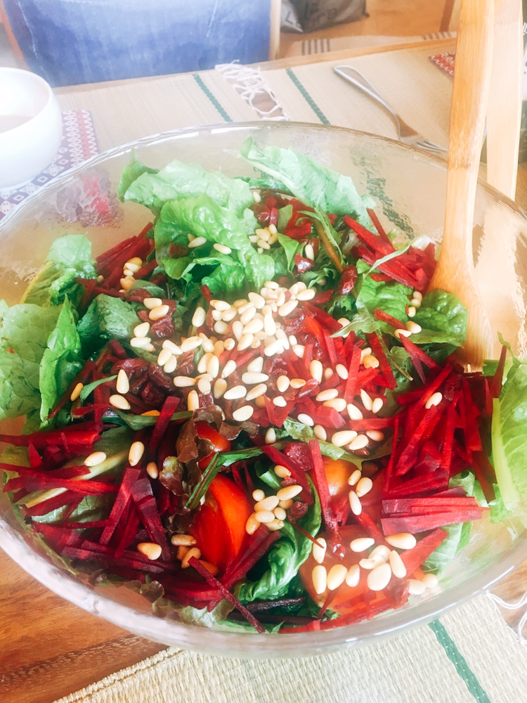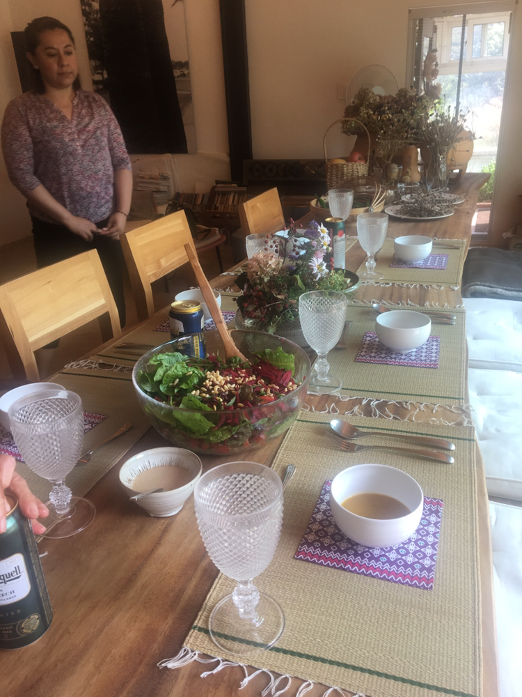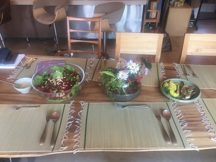 다 만들어진 샐러드와 구운 가지와 호박 등이 하나, 둘씩 식탁으로 옮겨졌다.