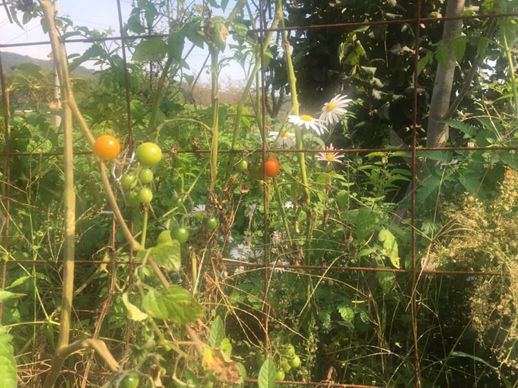 잘 익은 방울 토마토들이 바닥에 떨어져 있어서 밭을 뒤적이며 하나씩 주웠다.