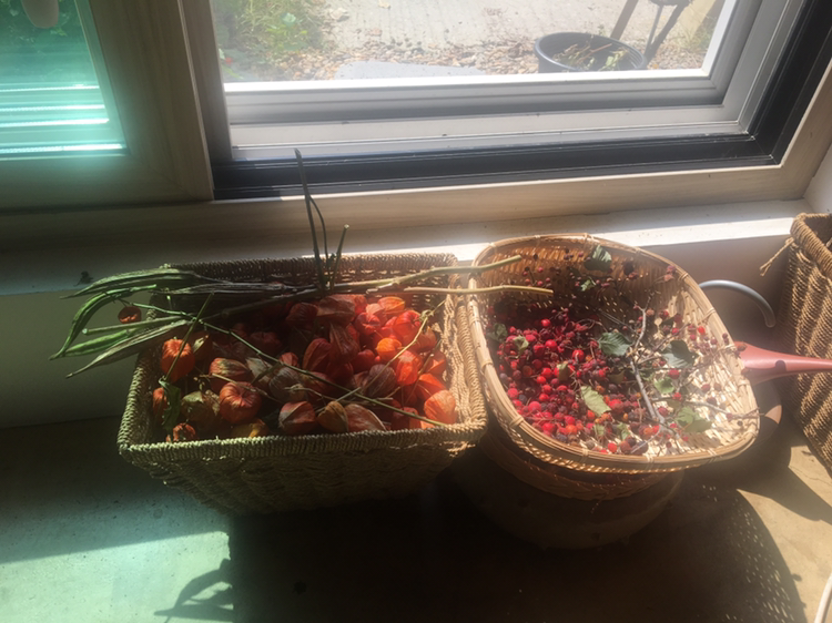 빛 좋은 곳에 말리고 있는 꽈리와 빨간 열매는 겨울에 크리스마스 트리 장식에 사용하면 예쁘다고 말씀해주셨다. :D