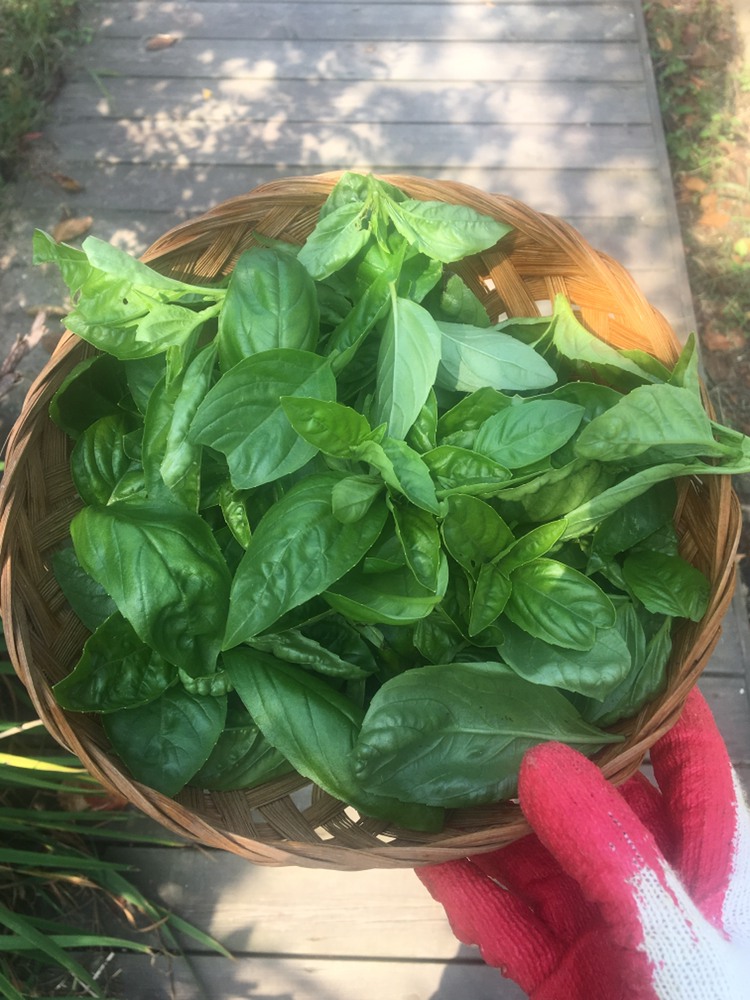 바질을 따니 허브향이 싸악 주변에 퍼졌다.