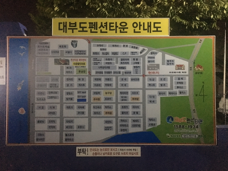 대부도 펜션타운인데 이 안에 놀거리도 많고, 층이 낮은 건물이 많아서 외국에 온 듯한 기분이 들기도 해요.