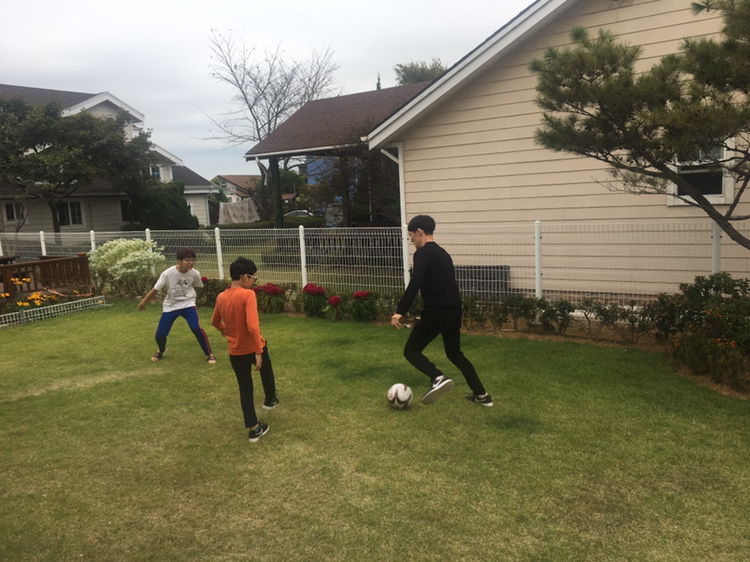마당이 있어서 배드민턴을 치거나, 축구를 했어요.