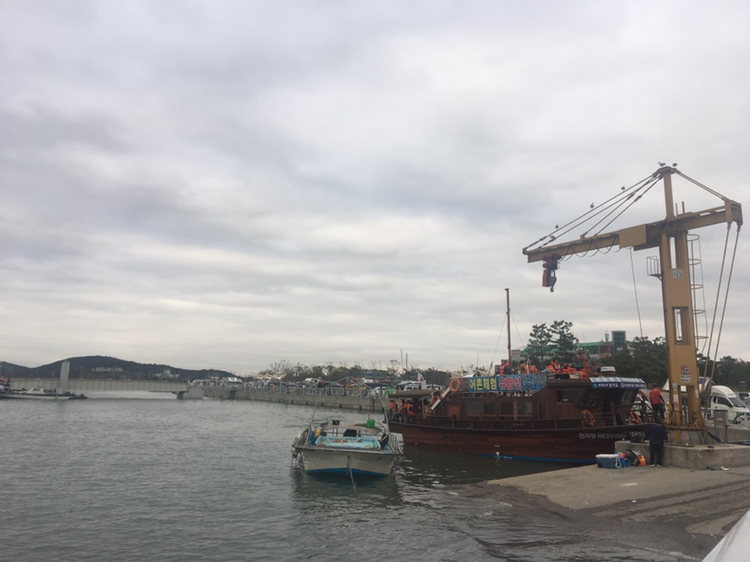 배 타고 어촌체험을 하는 사람들도 있고,