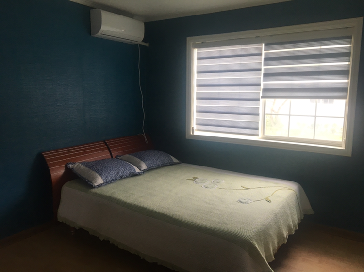 이층집인데 넓은 거실을 포함해서 침대방과 바닥에서 잘 수 있는 방이 총 다섯개 있어요.