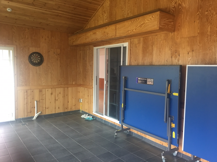 실내에는 노래방과 다트, 탁구대 등 게임시설이 잘 갖춰져 있어요.