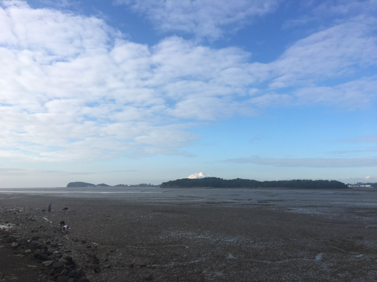물이 빠지고 갯벌이 드러나니 아이들이 꽃게 잡는다며 삼삼오오 모여서 들어가네요.