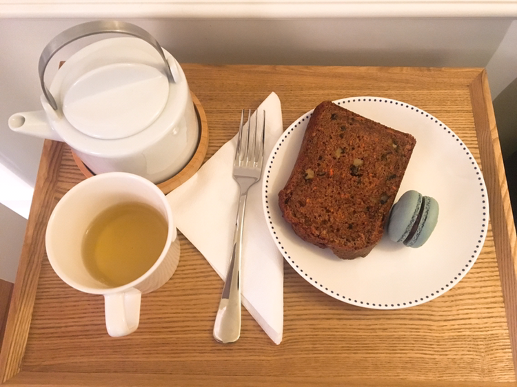 책을 고르는 사이에 따뜻한 차와 디저트가 제가 선택한 자리에 도착했네요. :)