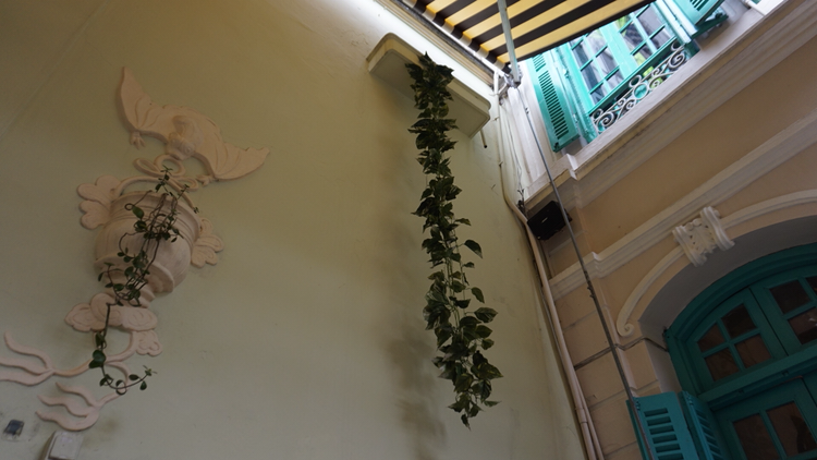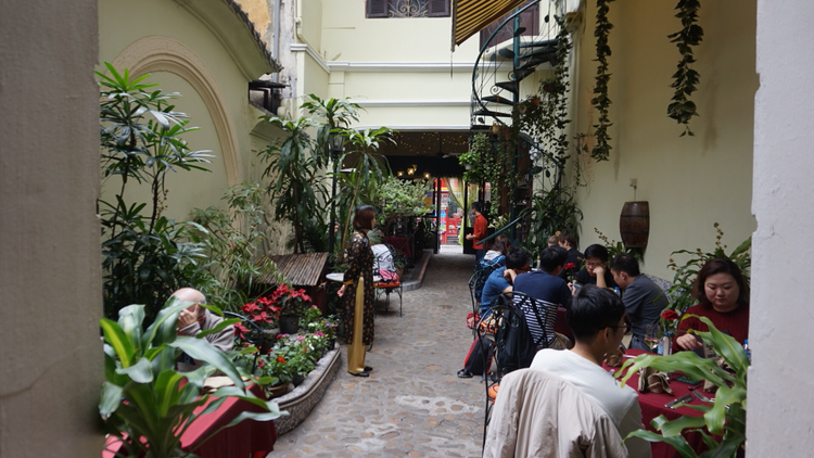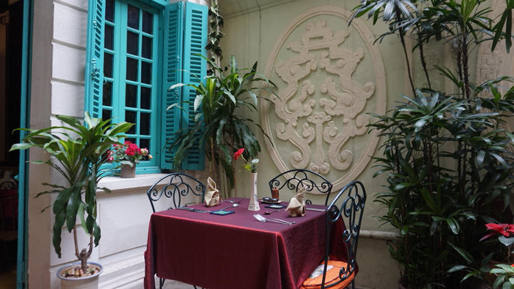 하노이의 중심부에 1928년부터 있어온 프랑스 식민지 시대의 빌라에 자리한 프렌치 레스토랑에 방문했다. 프랑스 요리를 베트남 재료들과 함께 만든 퓨전 레스토랑이었다. 야외 가든에 앉았는데 이국적인 분위기를 풍기는 민트색 문이 예뻤다.