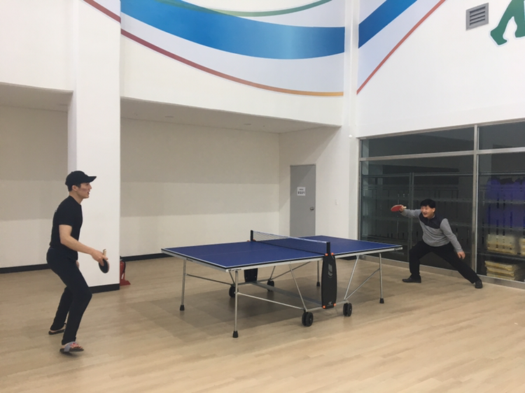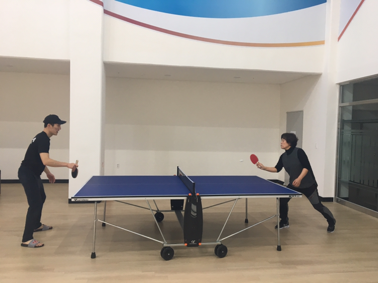 가족들과 실내 체육관에서 탁구와 배드민턴 치기!