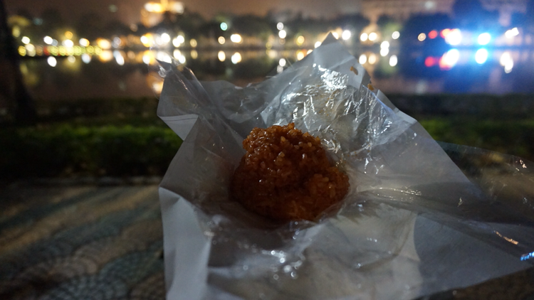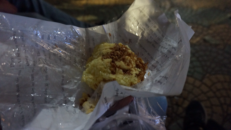 그곳에서 스티키 라이스를 샀는데, 우리나라 주먹밥 또는 김밥처럼 간단히 먹을 수 있는 밥이다. 가장 저렴하게 먹을 수 있는 아침으로 노점상 상인들 또는 학생들이 많이 사먹는다고 한다.
