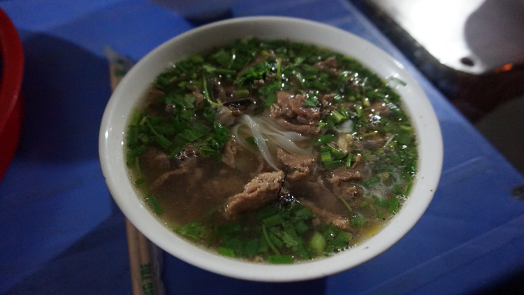 아직은 어두운 거리에 사람들이 의자에 옹기종기 앉아 쌀국수를 먹고 있었다. 주변은 오토바이도 사람도 많지 않고 한산하다.