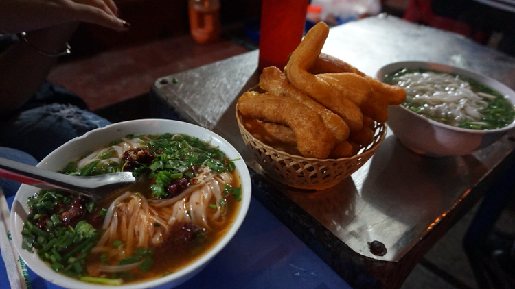 “좋은 아침이야! 저기서 쌀국수 먹으면서 아침식사 투어 시작해보자.”