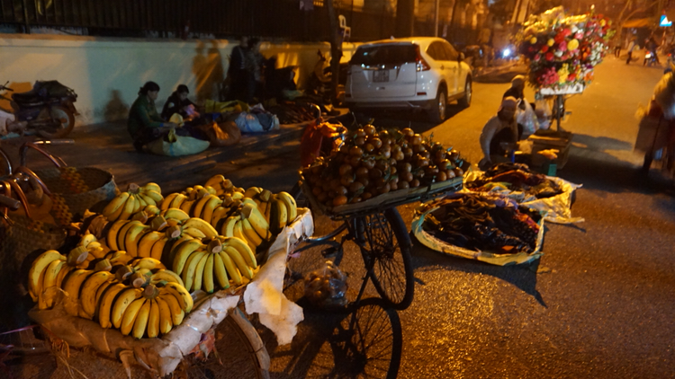 쌀국수를 먹고 길을 걷다보니 반딧불이처럼 머리에 불빛을 밝힌 사람들이 보인다. 과일, 채소, 빗자리, 옷 등 다양한 물품을 파는 길거리 마켓도 조용히 모습을 드러내고 있었다.