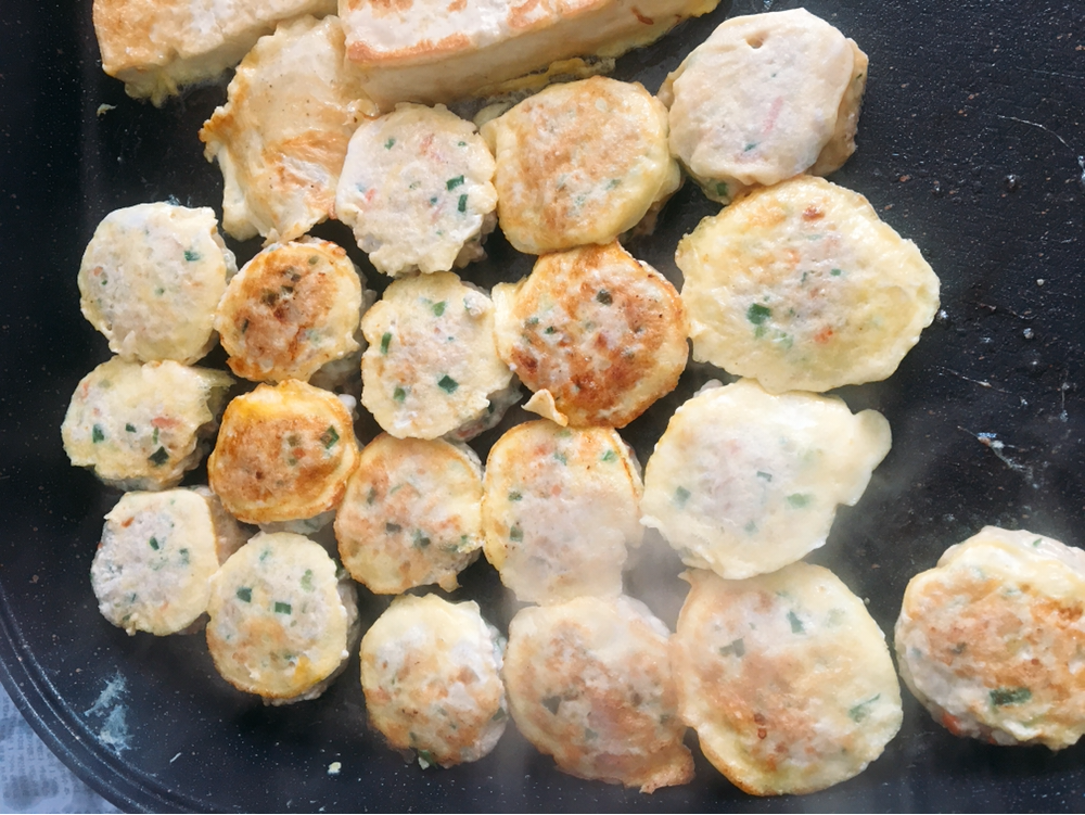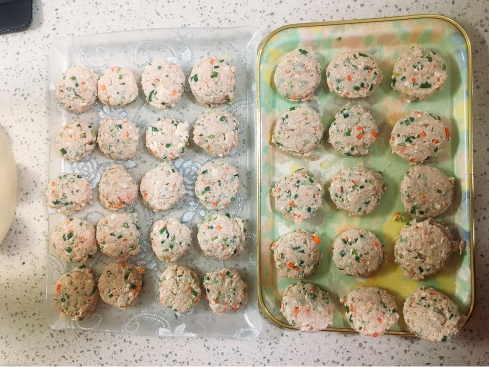 엄마께서 다진 돼지고기에 당근, 파 등을 썰어서 반죽을 미리 해두셨어요.