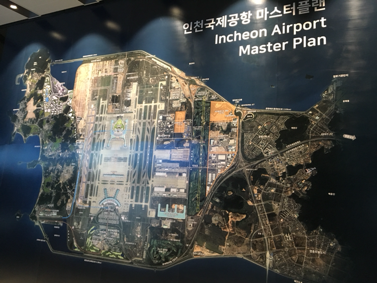 인천국제공항 마스터플랜을 보며 1터미널과 2터미널 위치와 공항 주변에 어떤 시설들이 있는지 알 수 있었어요.