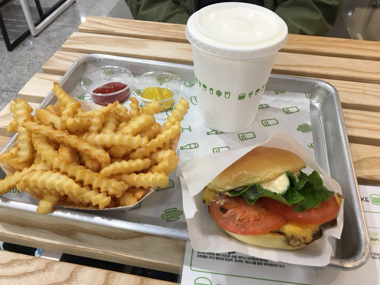 최근에 쉑쉑버거 계속 먹고 싶었는데, 마침 2터미널 지하1층에 매장이 있어 점심은 쉑쉑버거로 해결했어요.