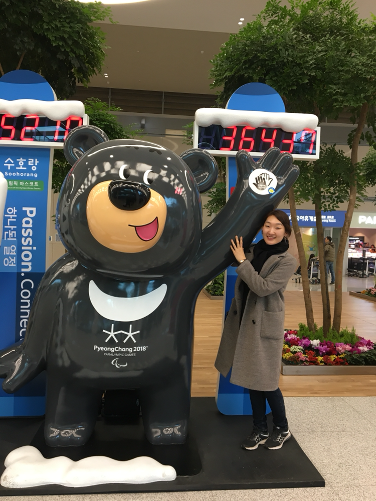 요즘 인기몰이를 하고 있는 평창동계올림픽의 마스코트 수호랑과 반다비를 만나 하이파이브도 나눴어요!