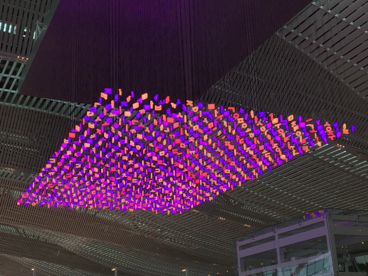 곳곳에 미술 작품들이 설치되어 있는데, 그중 한글 자음이 걸려있는 이 작품이 기억에 남네요.