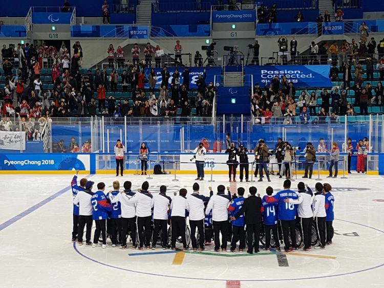 메달을 받을 때도 금메달과, 은메달 표정이 어찌나 대조적이던지... 우리나라 장애인아이스하키팀도 나와서 동메달을 목에 걸었습니다. 무척 행복해보였고요. 심리학에서 은메달리스트 보다 동메달리스트가 행복하다고 하던데, 그 상황을 가까이에서 목격한 시간이었습니다.