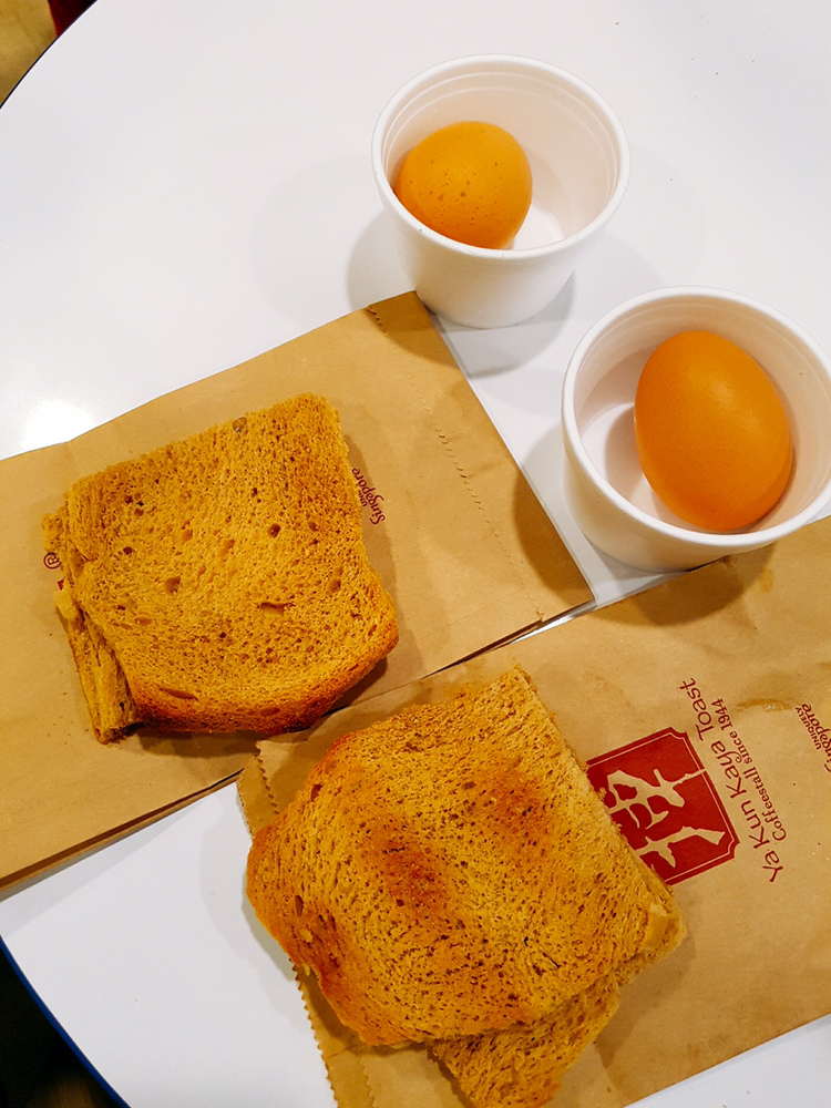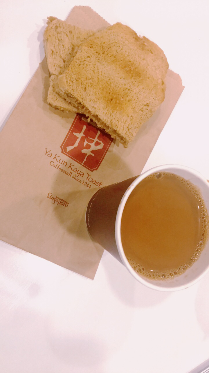 야쿤 카야 토스트를 아침으로 냠냠~! 달달한 커피와 카야잼으로 밤샘비행의 피곤함을 날려봅니다. 보통 아침에 도착하는 여행객들은 잠을 깊이 못자서 까칠하다는데 덕분에 달달한 아침이 되었군요! XD