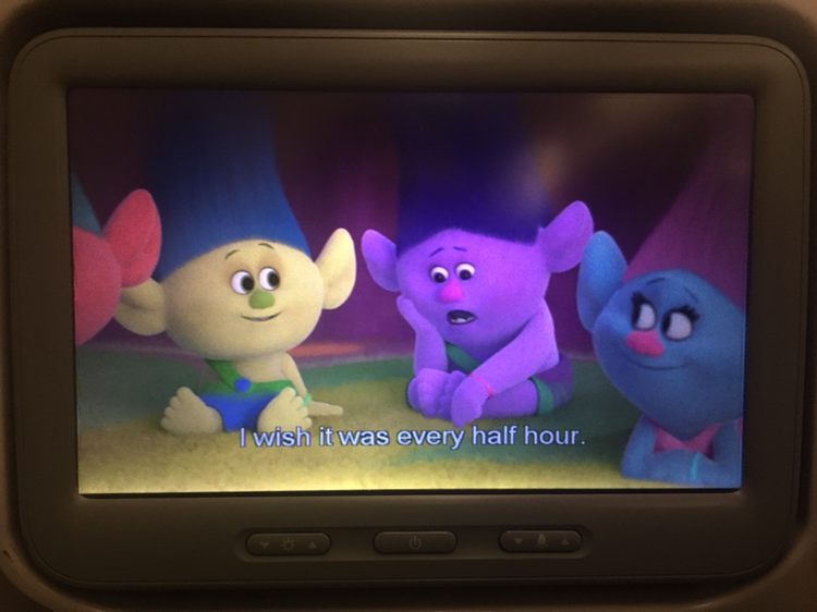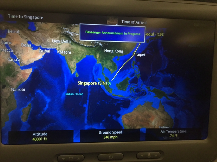 싱가포르 항공을 탔는데 내부가 너무 추워서 담요를 두개나 덮고 쿨쿨 잤어요. 자다가도 기내식이 나오면 맛있게 먹고, 잠깐 영화 트롤을 보다가 이내 다시 잠들었습니다. 어디서나 잘 자는 편이라 자다보니 창이 국제공항에 도착한다고 하네요~