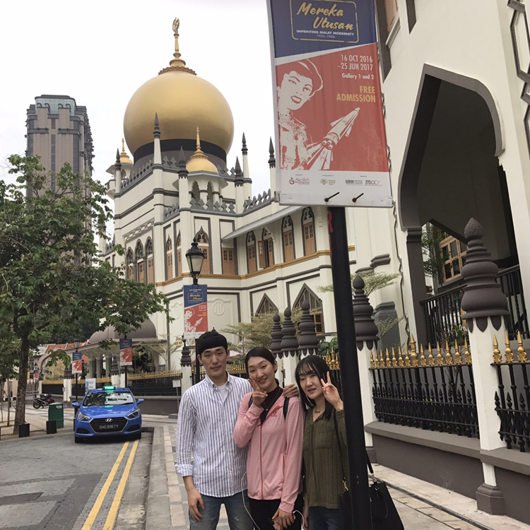 첫번째로 깜뽕끌람의 술탄 모스크를 찾아갔어요~ 싱가포르는 적도 근처라 태양이 지글지글하거나 비가 좍좍 내리는 여름 날씨여서 흐린 날이 활동을 하기 좋다고해요~ 그런 점에서 날씨가 참 좋은 날입니다. :)