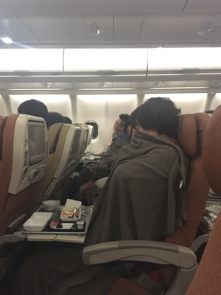 2월 1일 11시 5분, 밤비행기를 타고 출발했기에 가족 모두 숙면모드 ON!