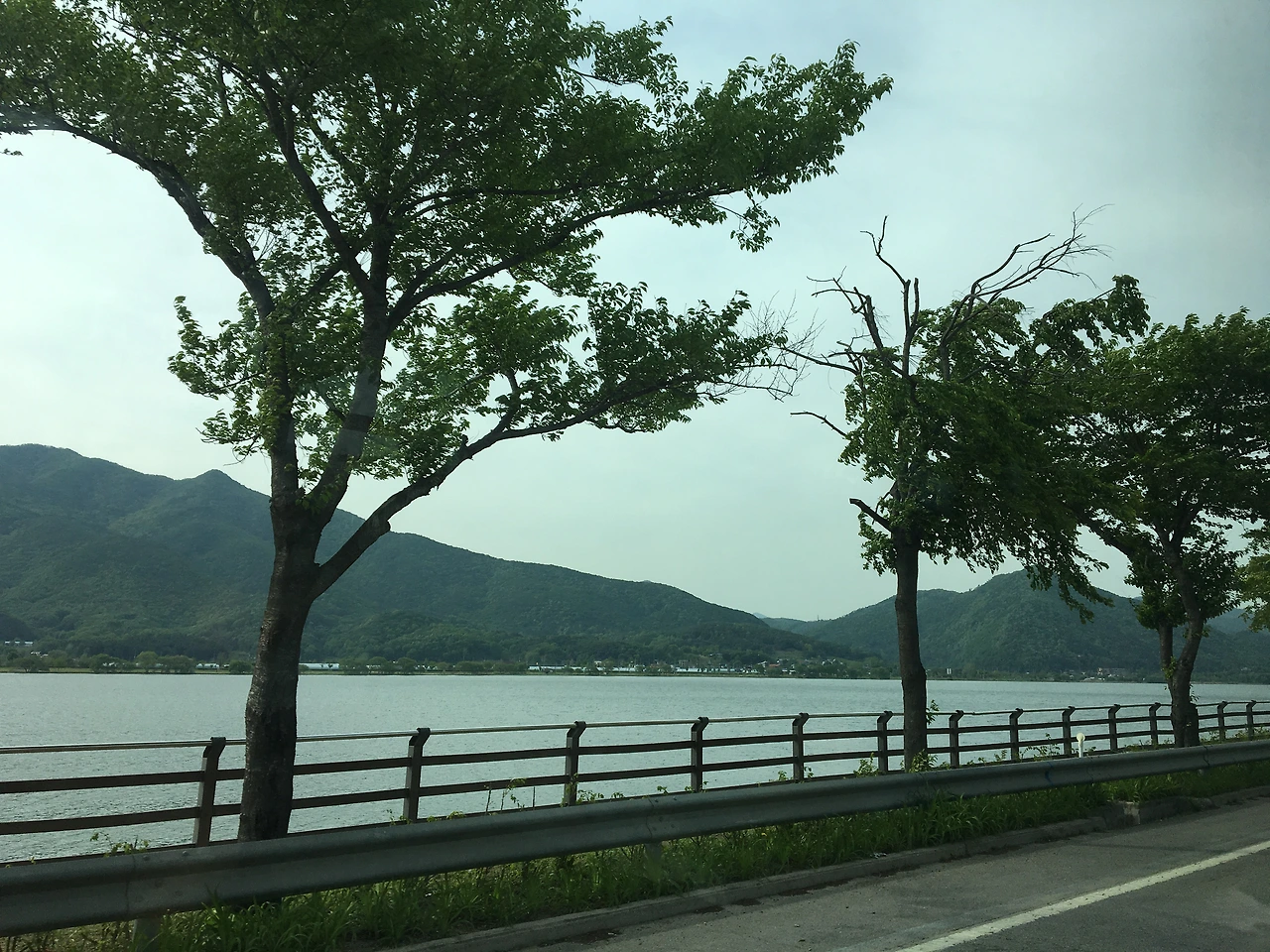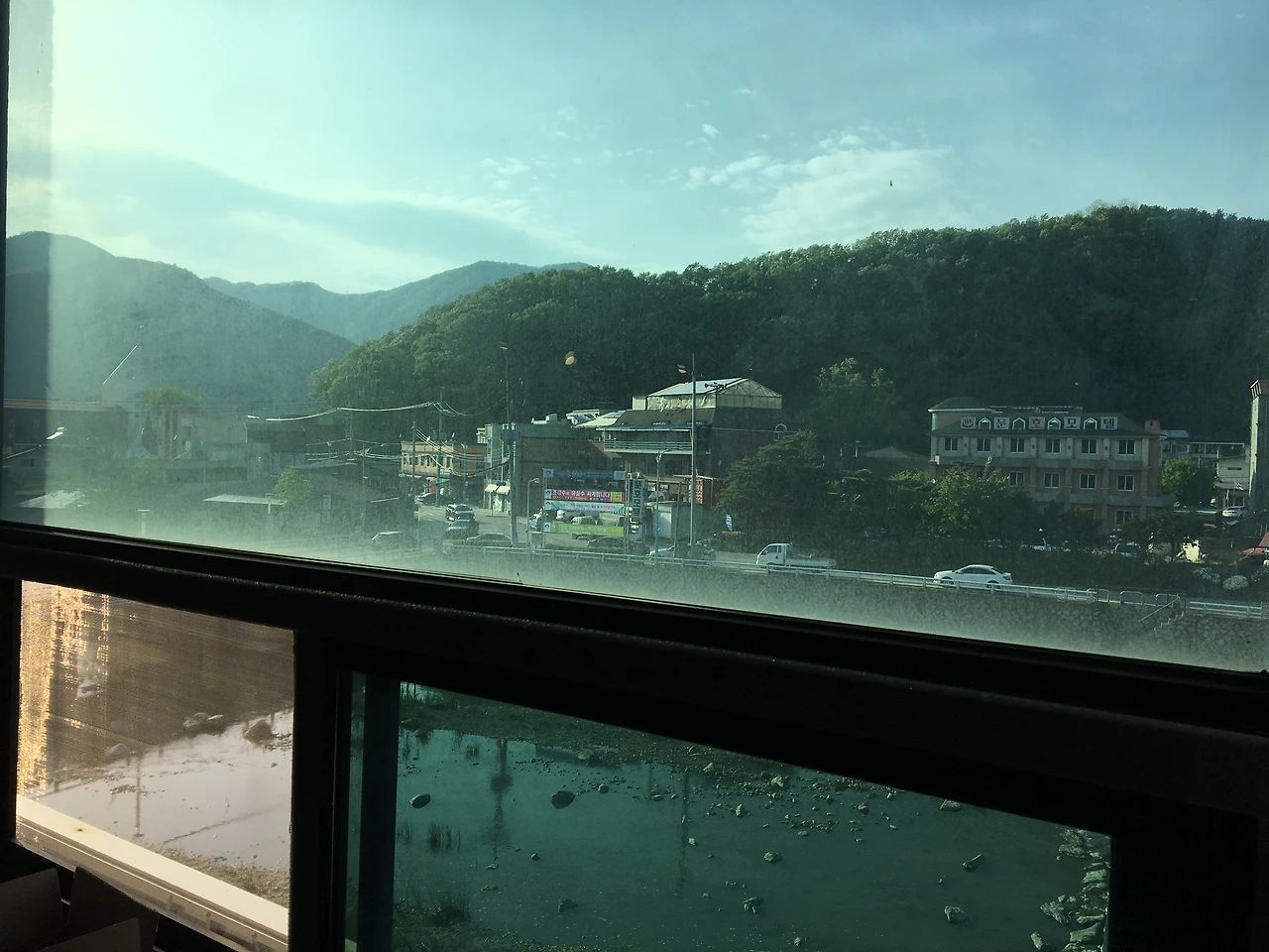 여기서는 모든 게 한 박자씩 늦게 흘러가는 듯하다. 약 40분 정도를 기다리니 마침내 몸집이 작은 8-7번 버스가 도착했다. 2,3분 마다 들어오는 지하철을 타는 것이 익숙한 나에게 꽤 긴 기다림이었다. 그사이 버스를 타려는 사람들 줄도 길어졌다. 사람들을 가득 실은 마을버스는 산과 강을 낀 도로를 따라 덜컹덜컹 달리기 시작했다.