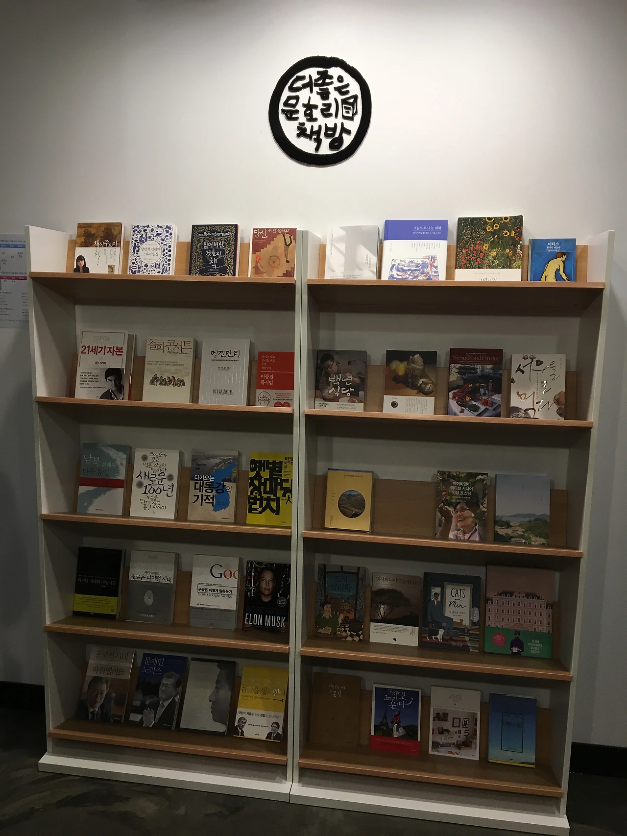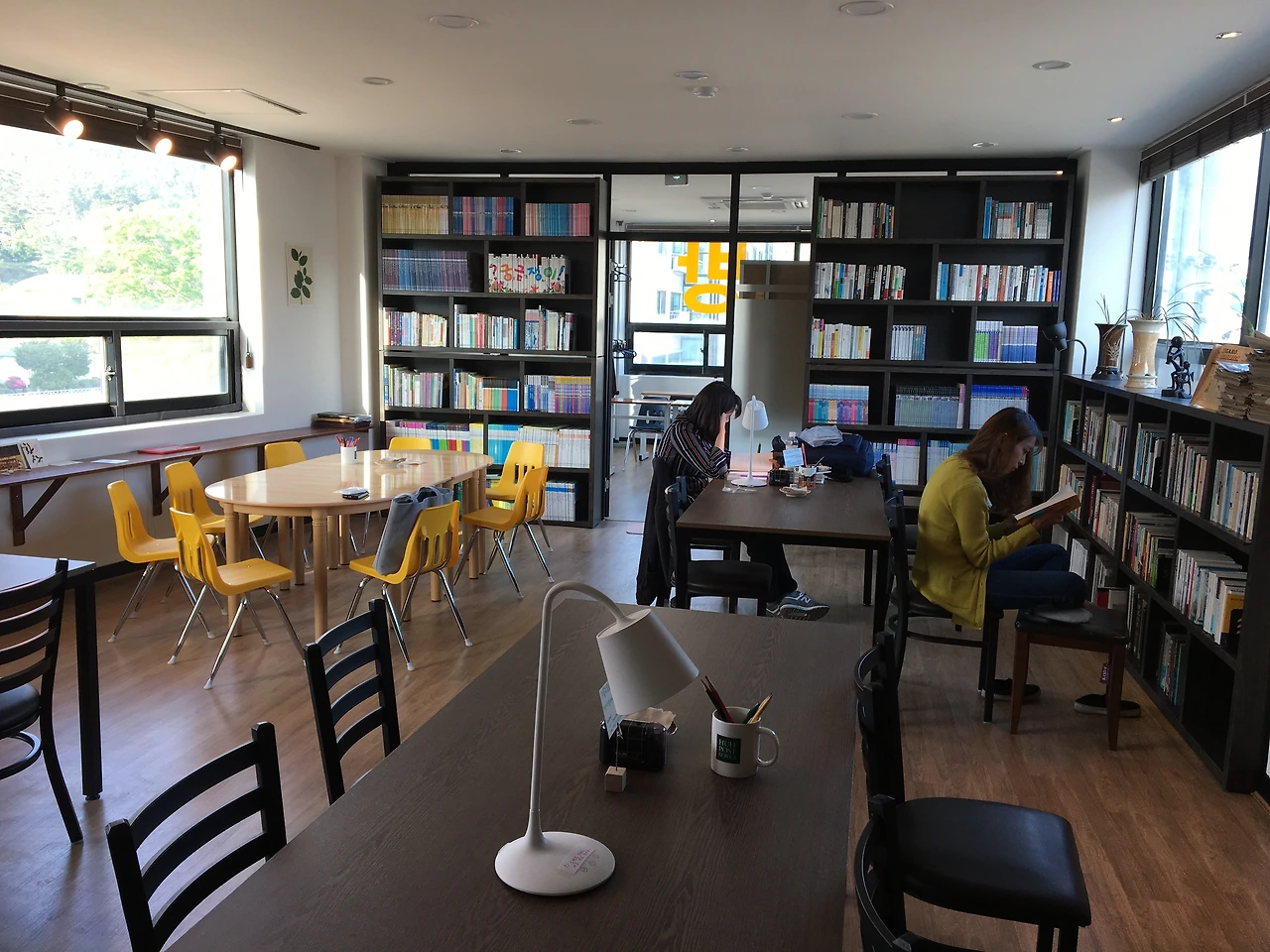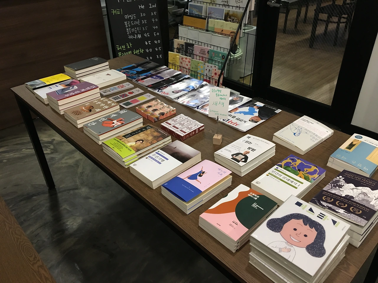 입구에는 신간이, 한발 더 들어선 공간에는 중고책들이 가득하다. 중고책 상태는 새책처럼 깨끗하며 소설, 시, 경제, 역사, 여행, 철학, 음악, 영화, 미술, 미디어 등 분야가 다양하다. 남편은 기자, 아내는 IT 개발자 출신의 부부가 가지고 있던 책을 모아 중고책 북카페로 만든 것이었다. 신간 역시 부부가 북큐레이션한 책들로 구성되어 있다. 어떤 책을 읽으면 좋을지 추천해달라고 요청하면 상황에 맞는 책을 친절하게 골라주시기도 한다.