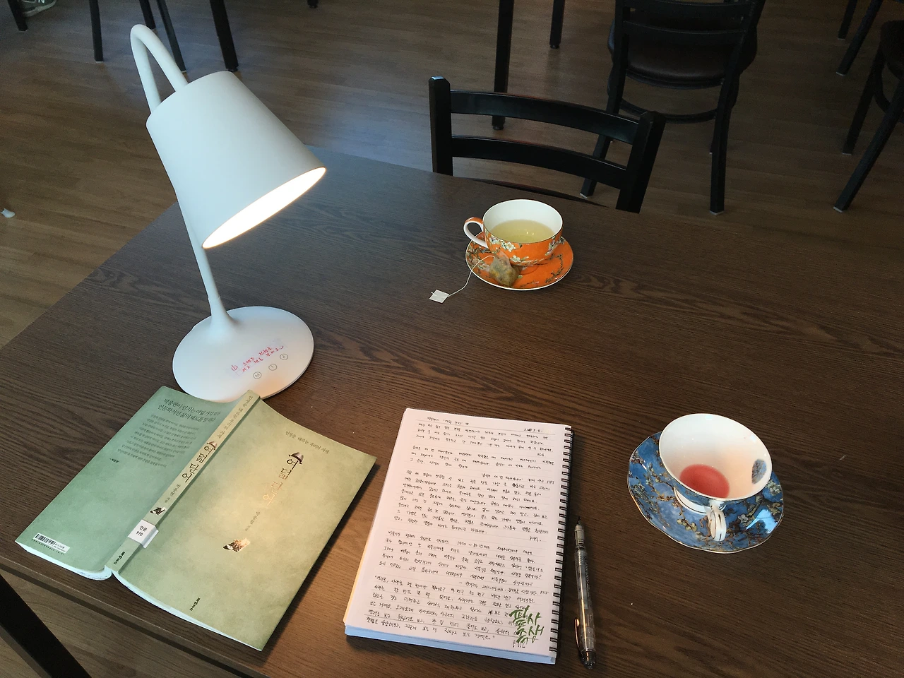 책을 좋아하는 친구는 서재를 찬찬히 구경하더니 어느새 독서 삼매경에 빠졌다. 같은 날 혼자서 문호리 책방을 찾은 또 다른 여성 분도 책을 한권 골라 조용히 집중해 읽으신다. 나중에 이야기를 나눠 보니 인터넷 매체 연예부 기자로 일하고 계신다고. 아늑한 책방 안에서 스탠드를 켜고 책을 읽고, 필사를 했다. 호젓한 분위기에 마음도 차분해졌다.