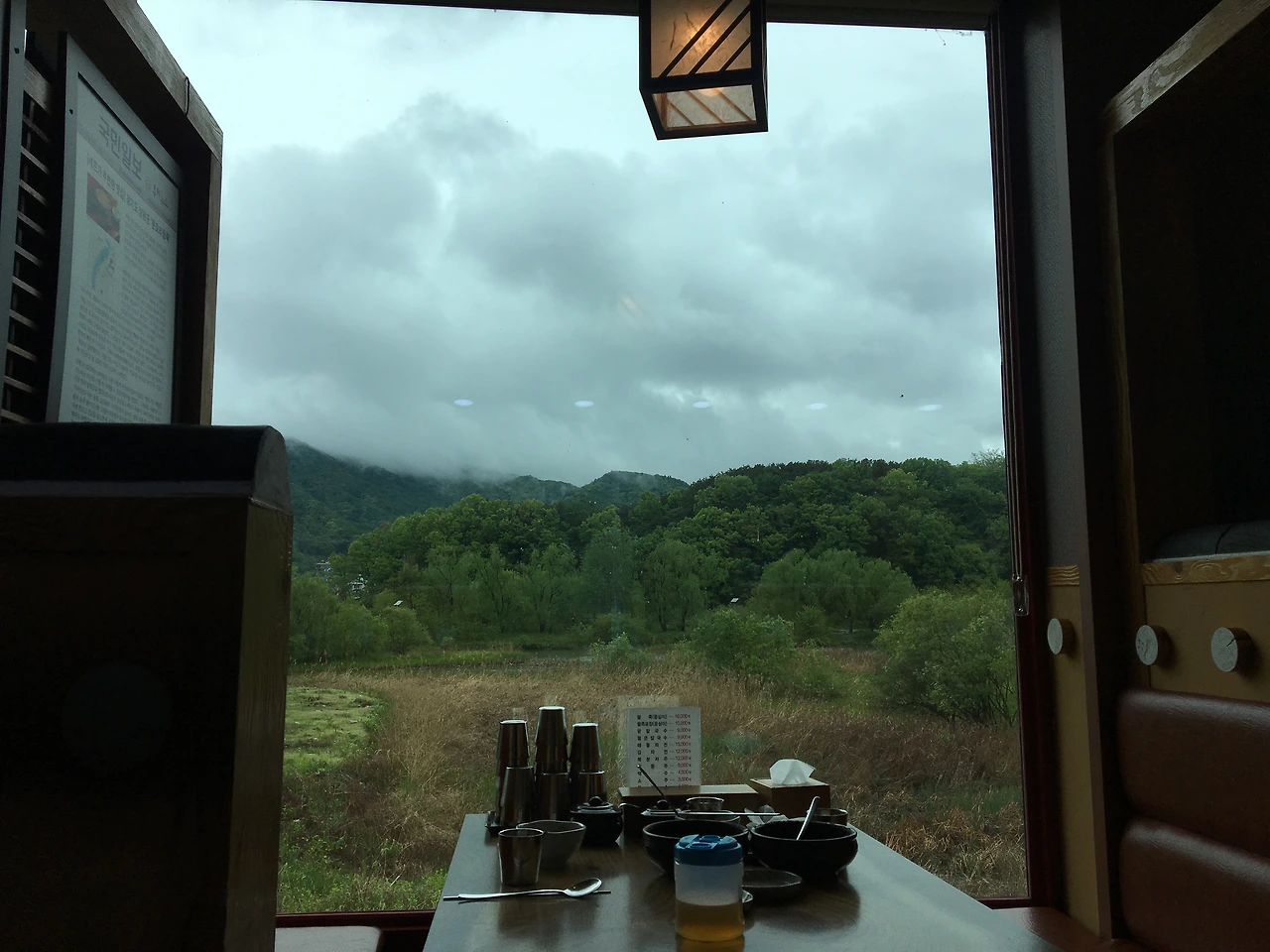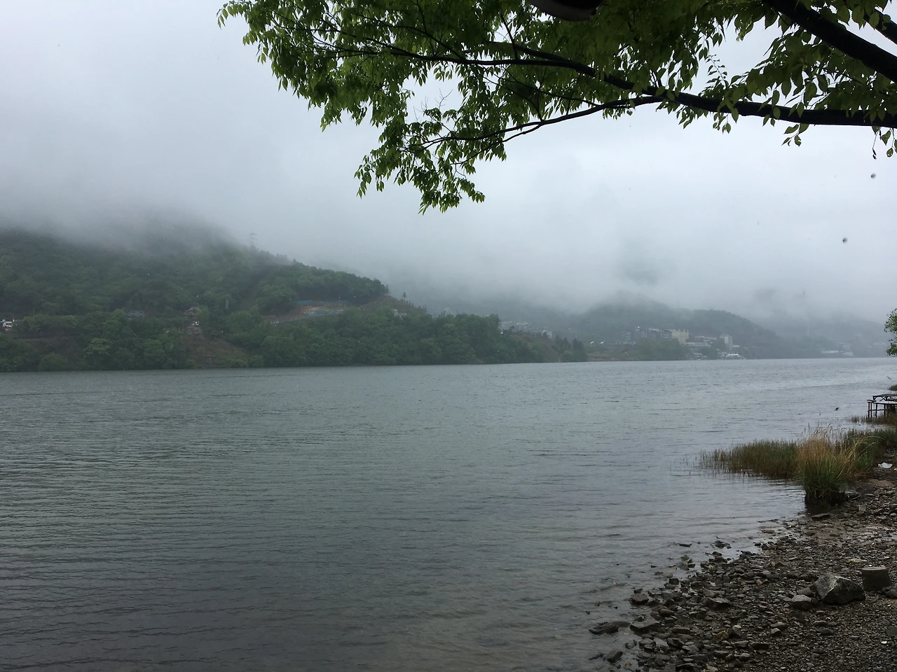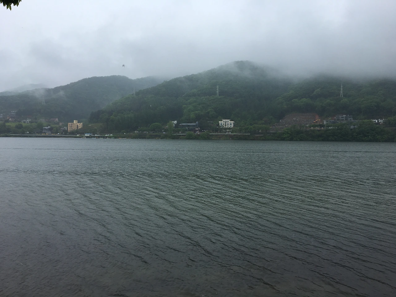 비가 내려서 산책하거나 자전거를 탈 수 없어서 아쉬웠지만, 안개 낀 산과 유유히 흐르는 강을 가만히 바라보았다.