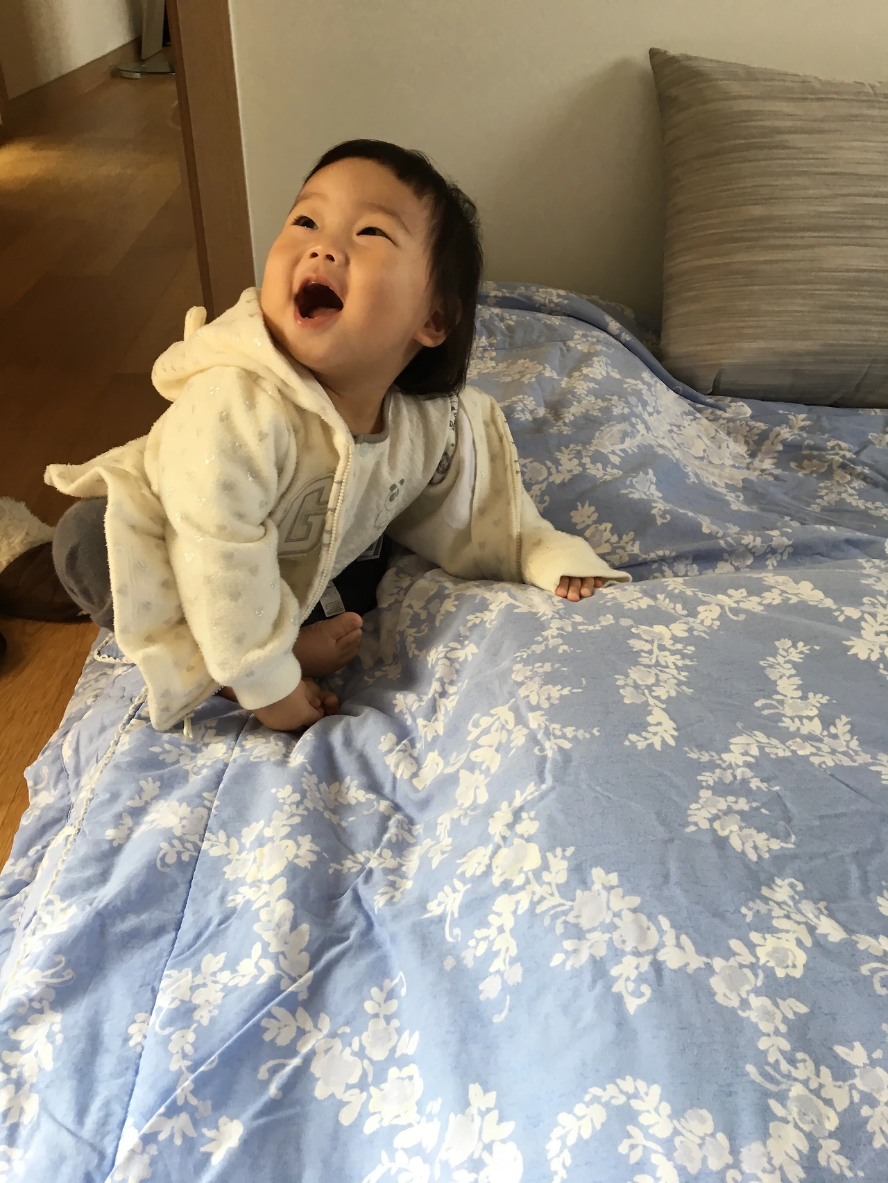 우리가 머무는 방에 깔린 이불이 좋은지 낯을 가리지 않고 걸어와 예쁘게 웃는 새봄이가 반겨주는 곳.