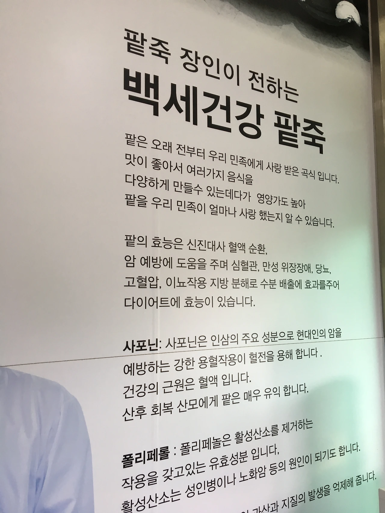 비가 내리기도 하고, 점심시간 보다 조금 일찍 도착해서 우리 앞에는 두팀 정도 대기하고 있었다. 대기실에서 기다리면 방송으로 대기번호를 부르는 시스템이다. 순서를 기다리는 동안 우리 뒤로 대기줄이 점점 늘어났다. 팥죽으로 이렇게 많은 사람들을 끌어들이다니 대단하다!!