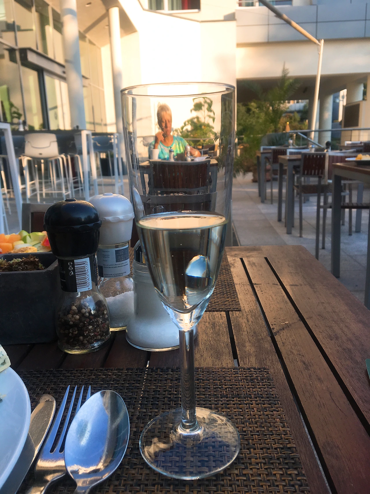 여러가지 맛을 탐험하고 싶은 호기심이 넘쳐났다. 크로아상을 포함해 다양한 빵이 가득한데 이번에는 안 먹어 본 빵을 먹기로 한다. 좋아하는 요거트와 견과류도 기다리고 있었다. 더이상 들어갈 자리가 없을 만큼 접시에 음식을 가득 채운 후 자리로 이동하려는 찰나에 와인잔이 눈에 띄었다. ‘와... 와인이다!’