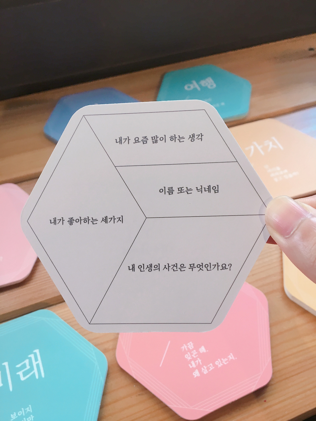 원하는 질문을 선택하는 것이 아니라, 주제를 선택한 후 나온 질문에 답하는 시간을 가졌어요. 주제별로 어떤 질문이 나올지 기대되었습니다.