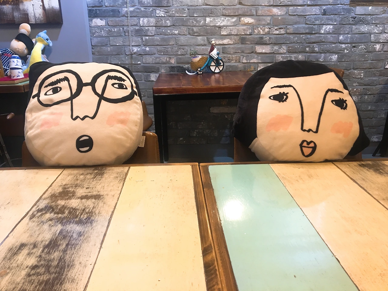 혼자였지만 외롭지 않았어요. 의자 근처에 인형 얼굴이 놓여 있었기 때문인데요. 인형들을 들어 제 앞자리에 앉혔습니다. 표정이 다양한 친구들이라 대화를 나누는 듯한 기분이 들었어요.