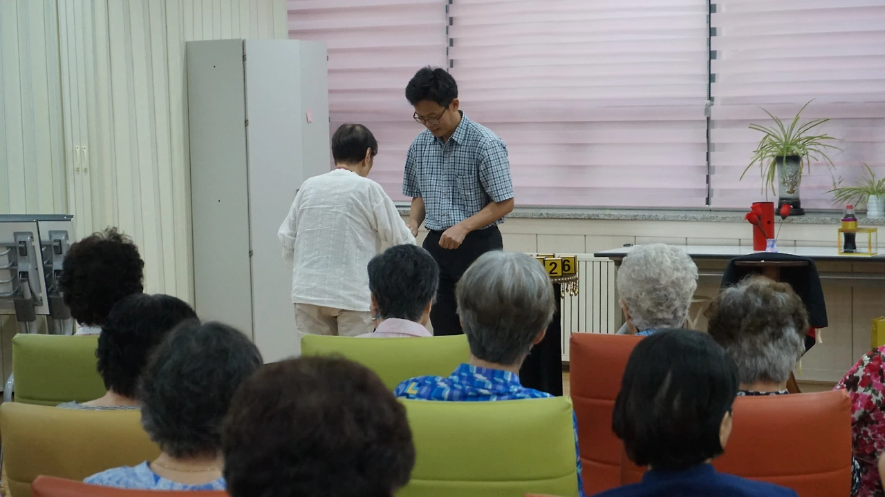 어르신들과 이야기를 나누고 시작하면 저도 진행할 때 마음이 한결 편하고, 어르신들도 저를 더 친근하게 느끼실 겁니다. 막간을 이용한 아이스브레이킹인거죠! 서로 얼굴을 미리 익히고 등장하면 박수도 많이 쳐주시고 대답도 더 잘해주세요~ 우리 모두 마음을 열고 좋은 날, 행복한 시간을 함께 만들기로 합니다. (박수~박수~~ 짝짝짝!!!)