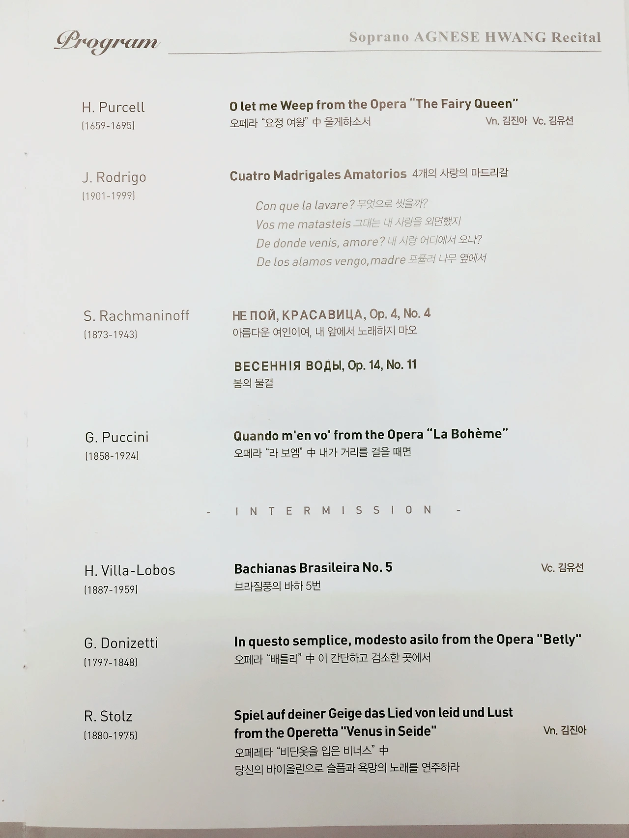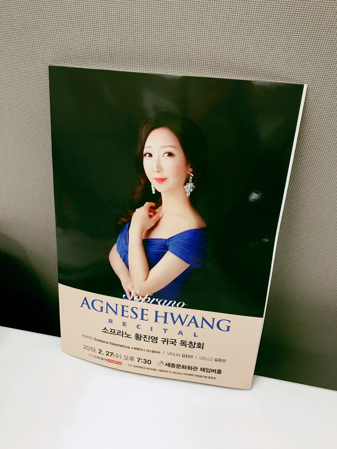 2월 27일 수요일, 세종문화회관 체임버홀에서 열린 소프라노 황진영 귀국 독창회에 다녀왔다. 첼로 레슨을 해주시는 김유선 선생님께서 협연으로 참여하셔서 기쁜 마음으로 찾아갔다.
