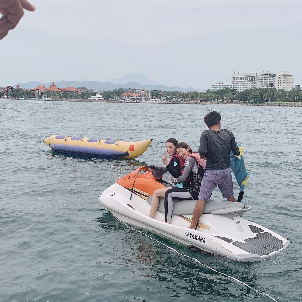 배를 타고 바다로 들어가서 수상 액티비티를 즐겼다. 부모님은 패러 세일링, 삼 남매는 제트스키를 선택했다. 모두 처음 해보는 것이었다. 파도가 치는 바다에서 제트스키 운전을 하려니 어려웠다. 처음에는 운전 경험이 더 많은 언니가 운전대를 잡았는데 영 불안했다. 언니 등을 잡은 나도, 내 구명조끼를 잡은 가이드도 모두 손에 힘을 꼭 쥐고 있었다. 방향을 틀 때 균형을 잃으면 바닷물에 빠질 것 같으니 겁을 먹은 것 같았다. 일부러 안 무섭다고, 천천히 하라고 외쳤다.