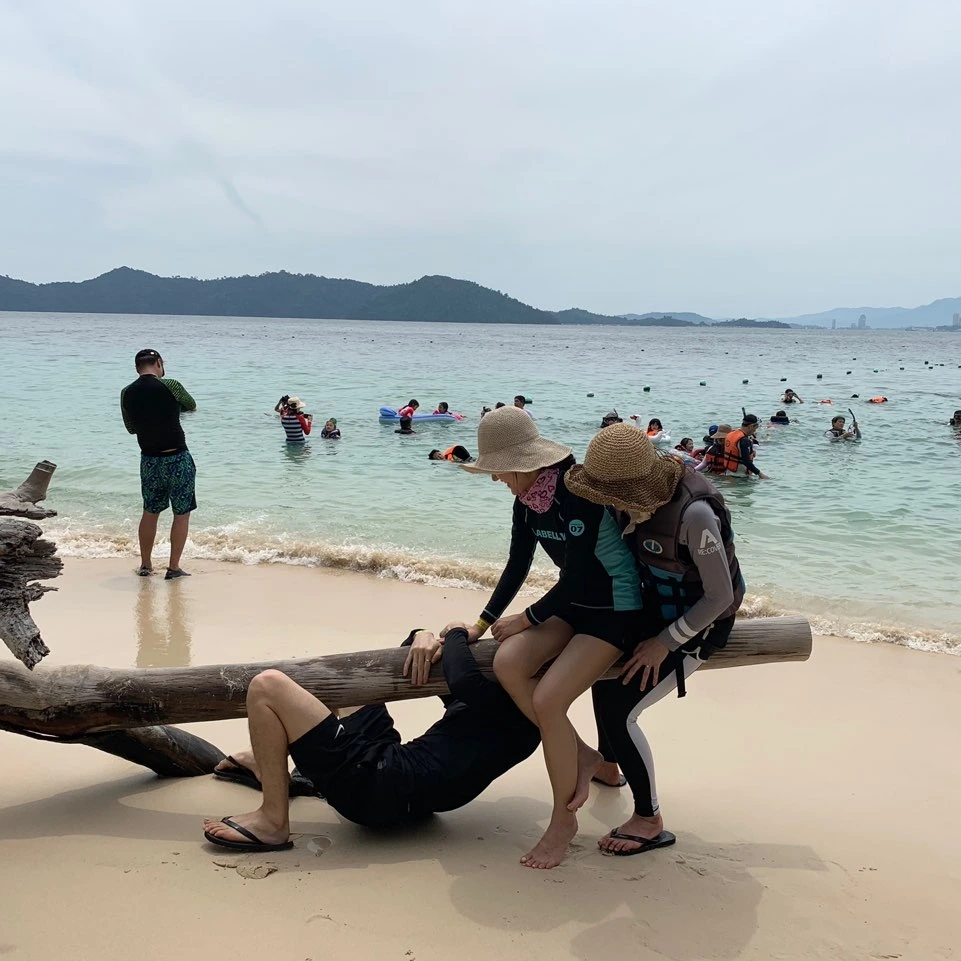 아침을 먹고 마무틱 섬으로 호핑투어를 갔다. 에메랄드빛 바다이긴 했으나, 바닷속 깊은 곳이 다 보일 정도로 맑지 않았다. 그래도 물속에서 놀다 보면 주변에서 물고기들이 같이 놀고 있었다. 회사 로비 수족관에서 물고기를 바라보기만 하다가 같이 노니까 신기하고 재미있었다. 물고기도 사람이 익숙한지 전혀 의식하지 않고 유유히 헤엄쳐 돌아다녔다.