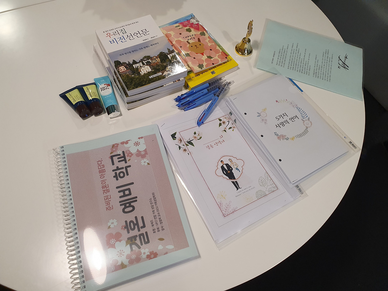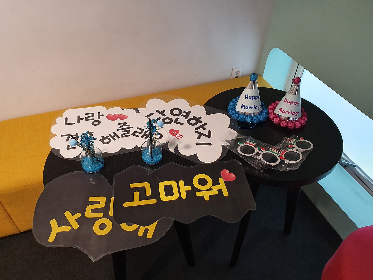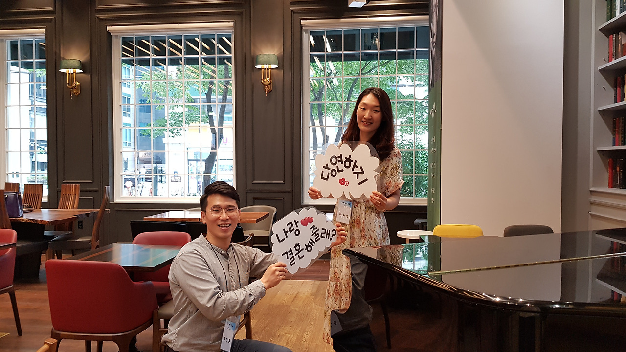 중간에 포토타임을 마련해주셔서 책방 곳곳을 돌아다니며 사진을 찍었다. '나랑 결혼해줄래?', '당연하지!', '사랑해', '고마워'와 같은 사랑스러운 문구가 준비되어 있었다. 나중에 보면 좋은 추억으로 남을 것 같아 포즈를 취하며 사진을 잔뜩 찍었다.