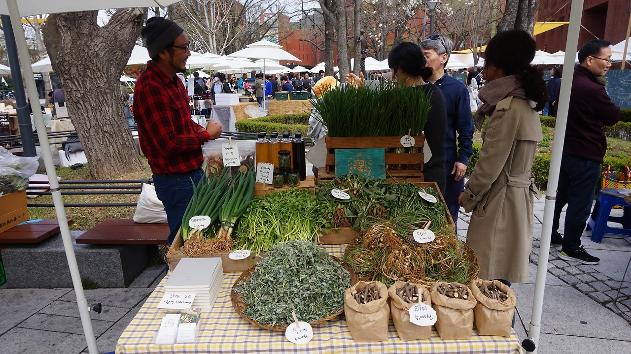 2012년 10월 첫 장을 연 마르쉐는 돈과 물건 교환만 있는 시장 대신 사람 사이 관계가 있는 시장이 있었으면 좋겠다는 바람에서 시작되었다고 합니다. 농산물을 직접 기르고 보살피는 생산자와 건강한 식재료와 먹거리, 생활소품을 사러 온 손님들이 서로 눈 맞추고 묻고 대답하며 소통하는 시장의 모습이 굉장히 신선하게 느껴집니다.