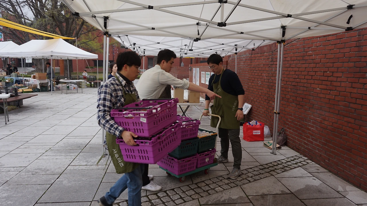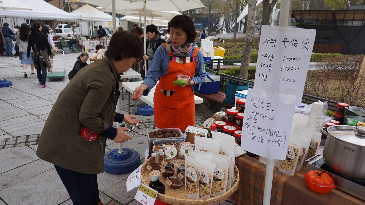 일회용품 대신 장바구니와 개인 식기를 사용하며 환경을 생각하는 장, 자원봉사자와 서포터즈의 고마운 손길로 함께 만들어 가는 공간! 마르쉐에 오셔서 농부가 이야기 해주는 먹거리 이야기를 듣고 장도 보면서 활기를 덤으로 얻어가시는 건 어떠세요?