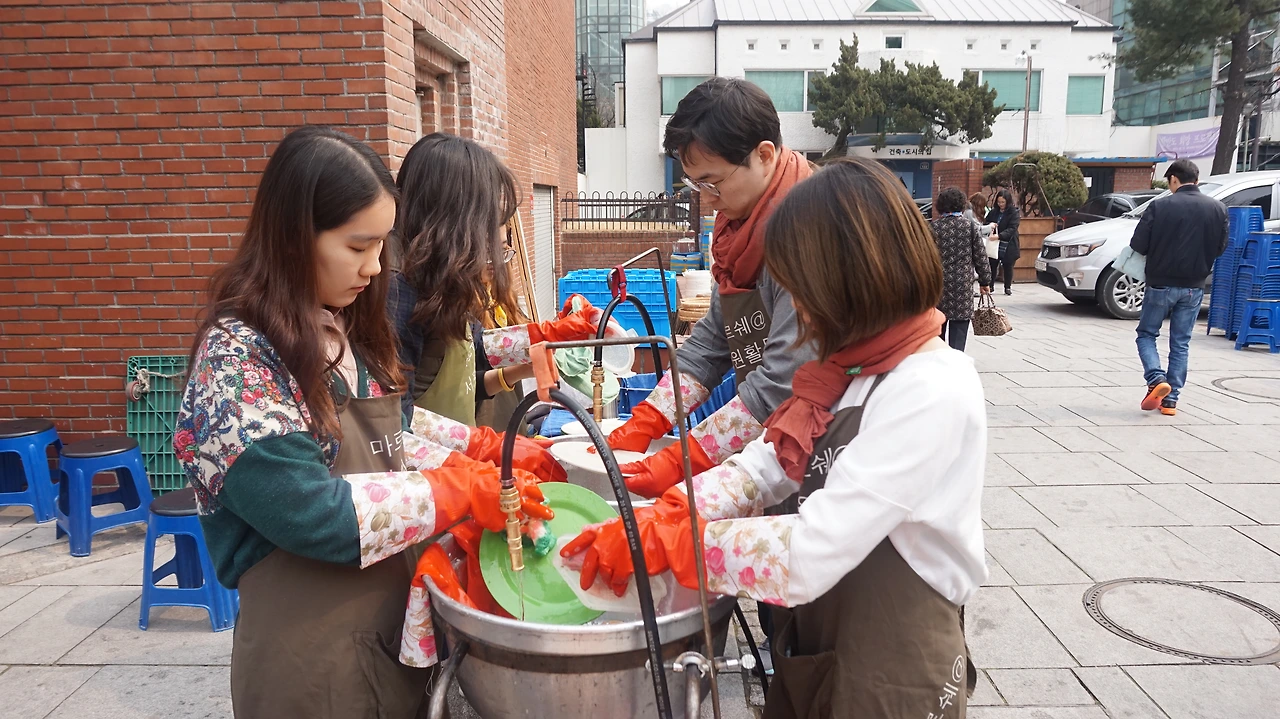 10시 반부터 11시까지는 출전팀들이 서로 인사를 나누고 안부를 묻습니다. 마르쉐 타임 뿐만 아니라 출점팀은 매번 장터를 마친 후 뒷풀이를 갖는다고 하는데요! 서로 준비해 온 맛있는 음식들과 농산물들을 십시일반 모으면 한 상 풍요롭게 차려집니다. 서로 가져온 음식을 나누며 당일 장터에 대한 이야기를 나누고, 앞으로 나아갈 방향을 함께 고민하는 따뜻한 시간을 갖습니다.