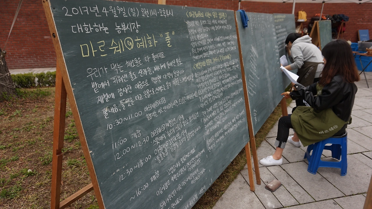 여러분께서도 연인, 친구와 함께 또는 가족 단위로 마르쉐를 찾아와 신선한 재료로 만든 먹거리를 즐기며 장을 보는 모습이 행복을 맛보시기 바랍니다.